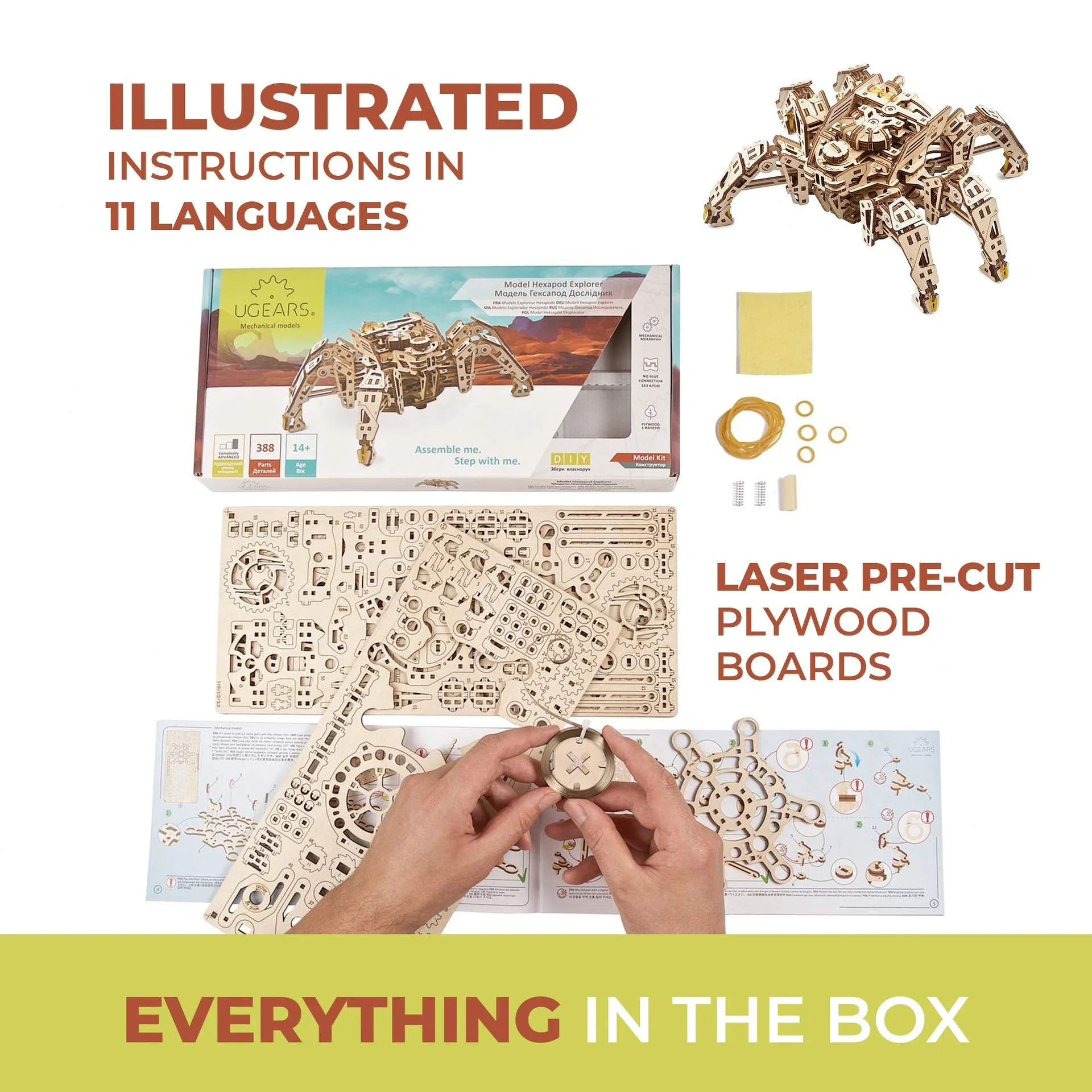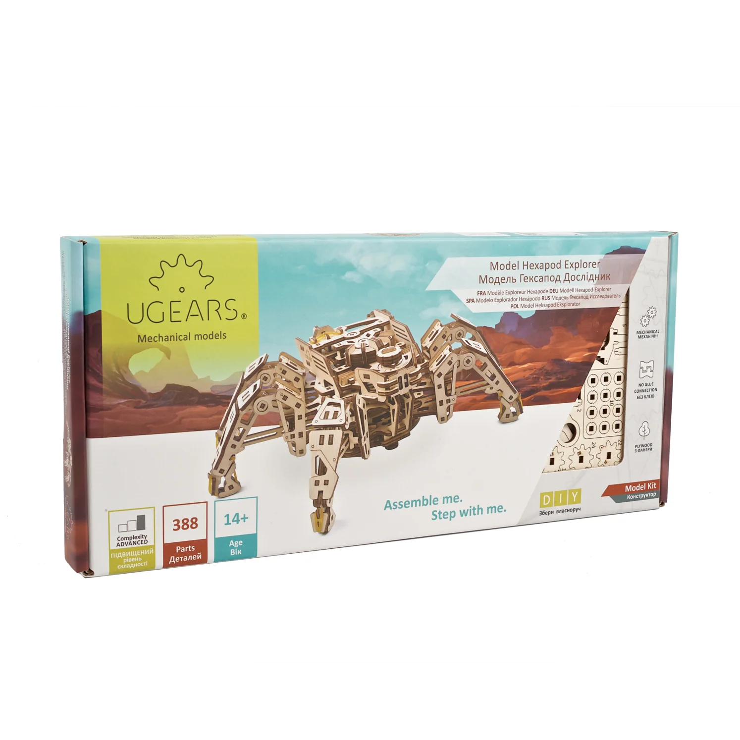 Cet Explorateur Hexapode prend sa place de champion parmi l’incroyable famille de mécanoïdes, d’automates, de puzzles 3D et de merveilles mécaniques en bois de Ugears. Nous avons créé un robot marcheur en bois purement mécanique, sans composants électroniques. Chez Ugears, nous pensons que le design doit être élégant, dans tous les sens du terme : simple, intelligent et beau à regarder.
