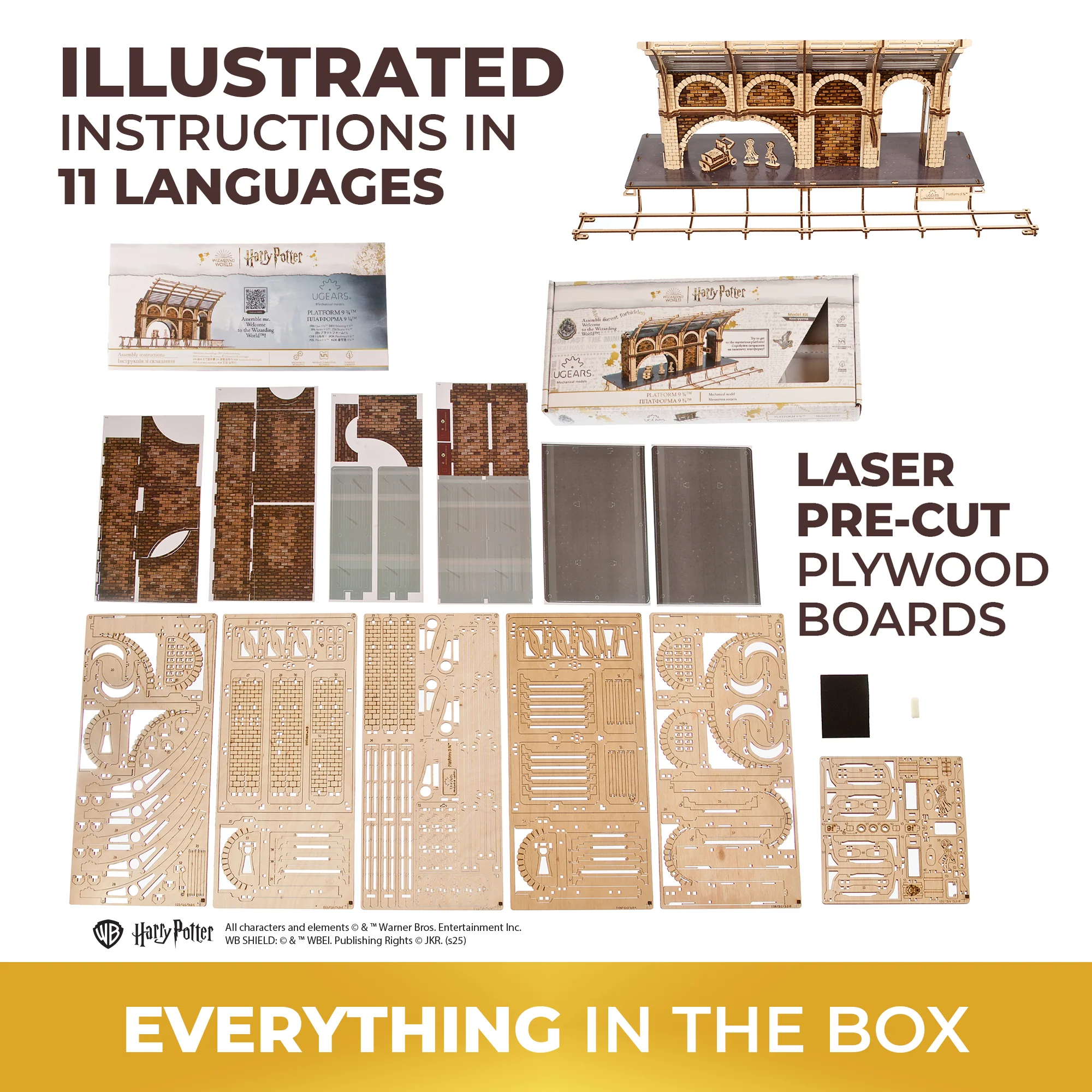 Cette maquette magique d’une belle gare de l’époque victorienne est un must pour tous les fans de la série de livres et de films Harry Potter™. Elle constitue également un merveilleux cadeau pour tout passionné de trains, tout amateur de modélisme, tout collectionneur de trains miniatures ou toute personne qui aime fabriquer des objets de ses mains. Si vos enfants aiment les livres Harry Potter™ ou ont vu les films, ils apprécieront des heures de jeu imaginatif avec la maquette Quai 9 ¾. Un projet de bricolage amusant que les parents peuvent construire avec leurs enfants, la maquette Quai 9 ¾ Ugears est votre introduction à un monde magique de mécanique, de maquettes et de machines en bois.